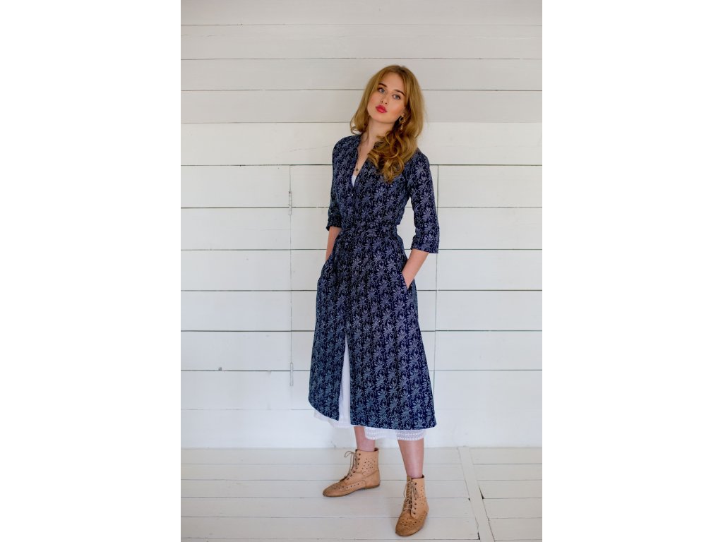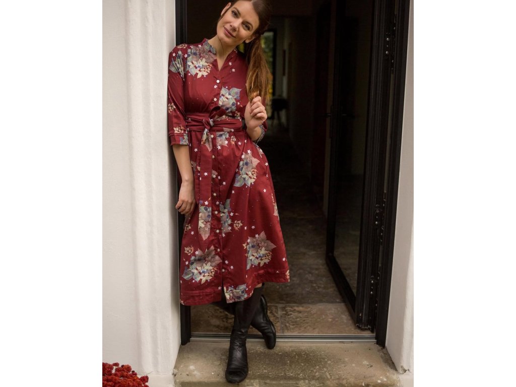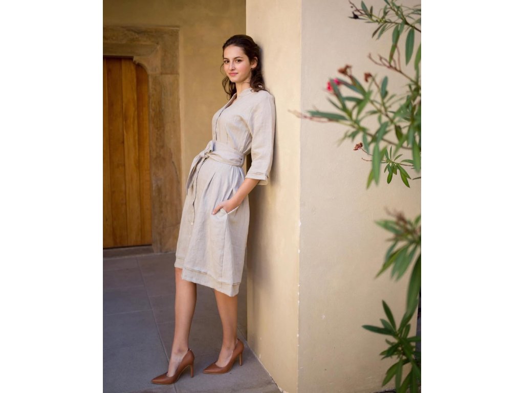 Košilové šaty s páskem v délce midi z našich skladových zásob. Šaty mají bezva kapsy v bočním švu.