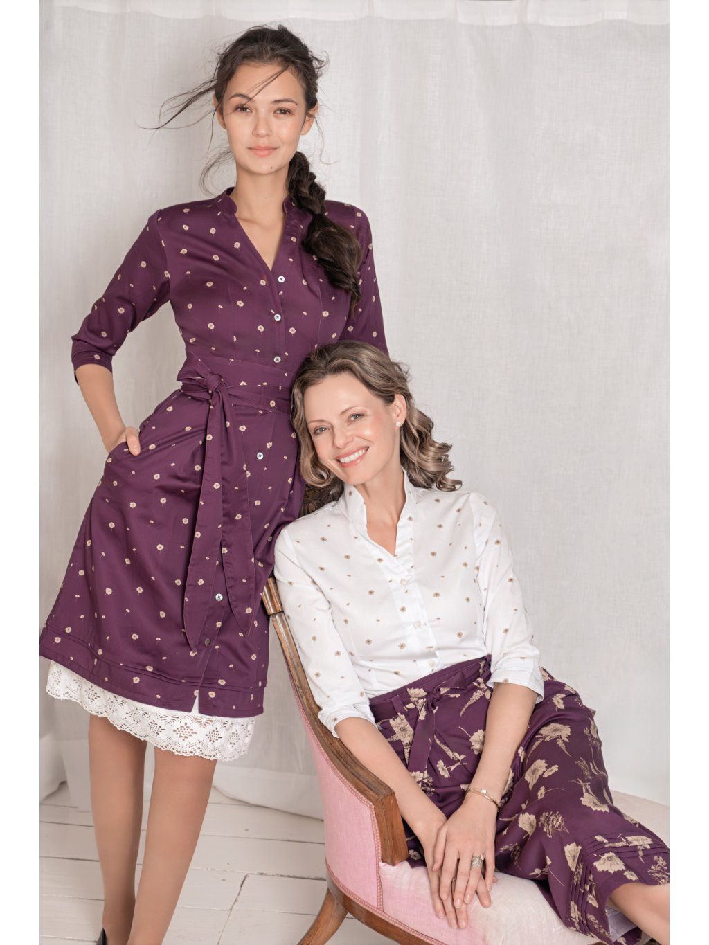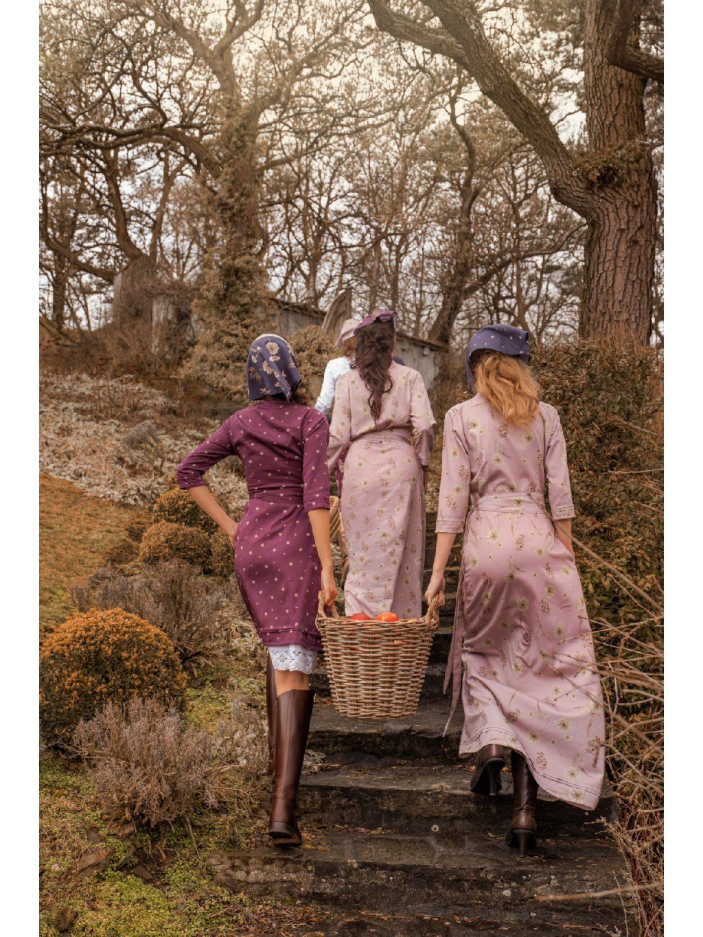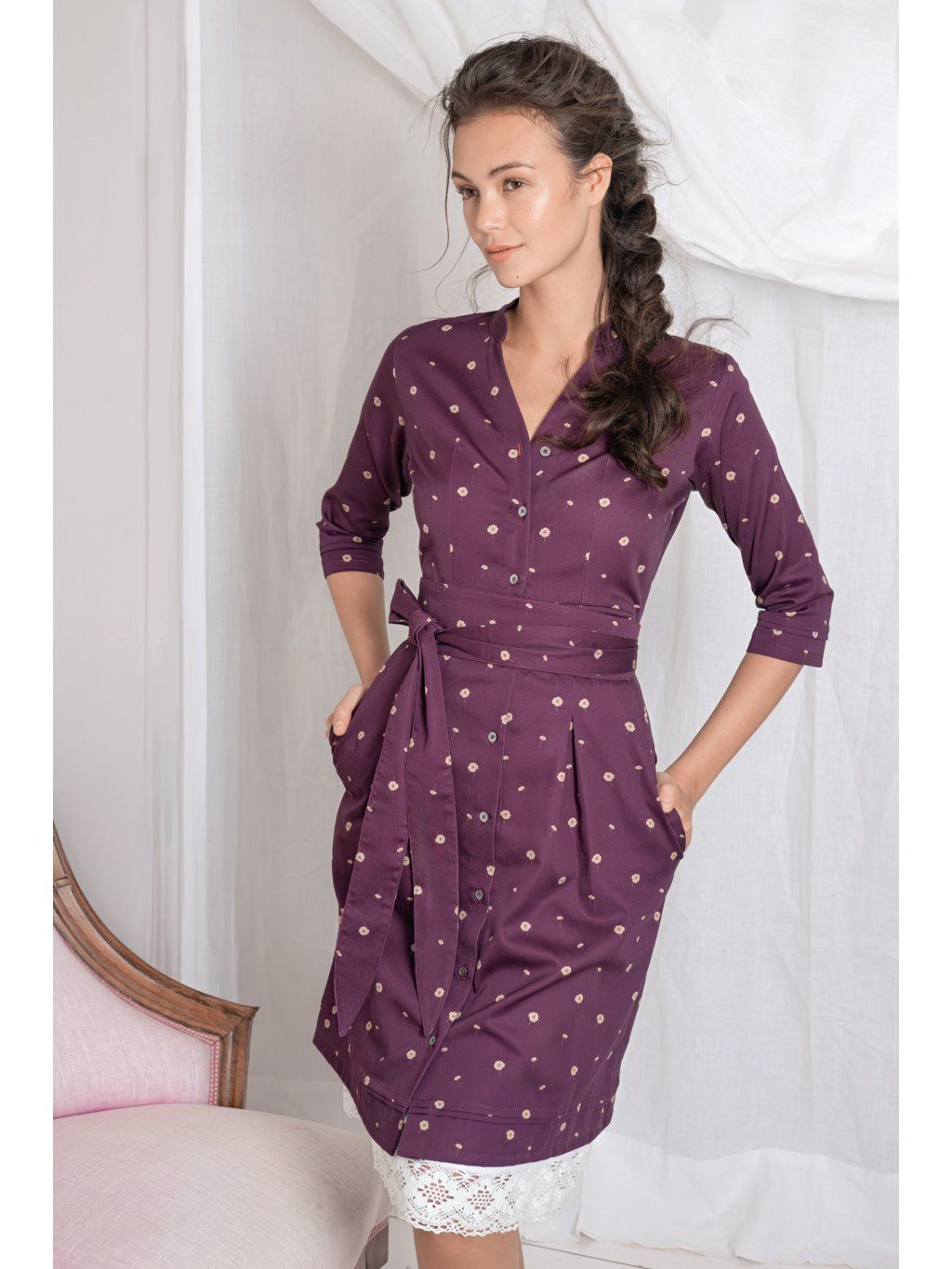 Nejprodávanější střih šatů z autorského vzoru drobnější Romance ve vínové barvě. Bavlněný satén 100% bavlna. Kapsy v bočním švu, sámky na okrajích rukávů a sukně, perleťové knoflíčky. Pouze skladové kusy do vyprodání, na zakázku nešijeme.